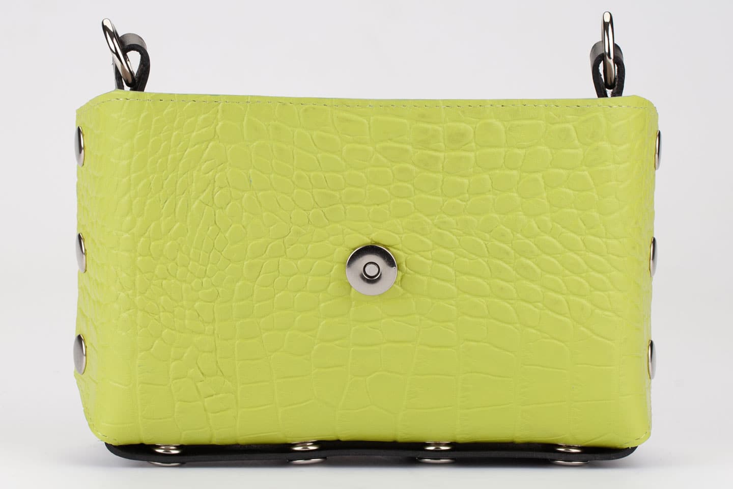 Перфектно решение за Вашия стайлинг – сменяема лицева част изработена от естествена кожа в кроко принт в зелено.