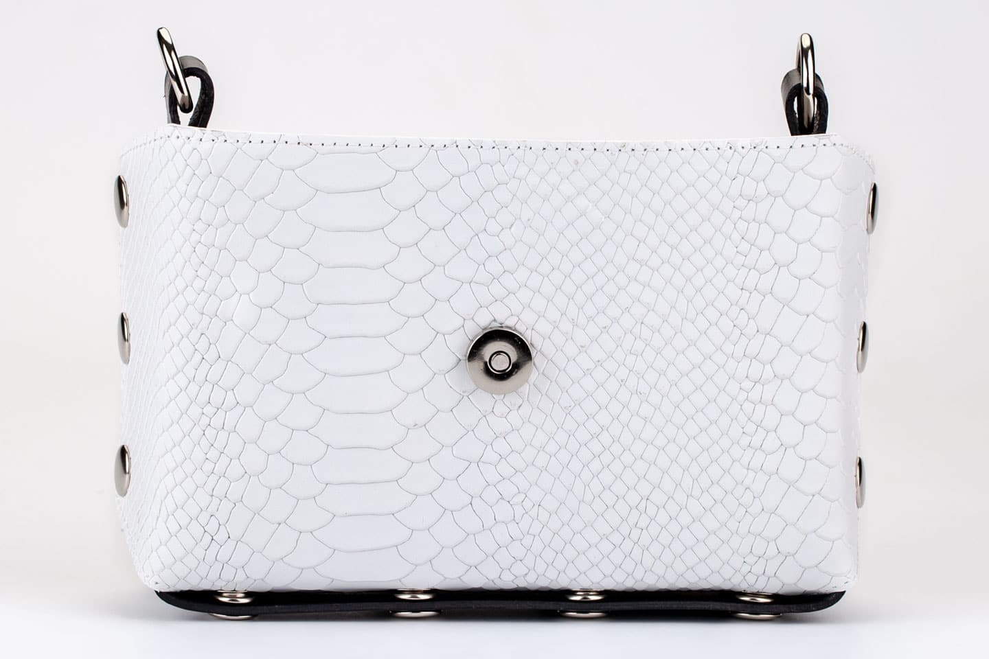 Перфектно решение за Вашия стайлинг – сменяема лицева част изработена от естествена кожа в кроко принт в бял цвят.