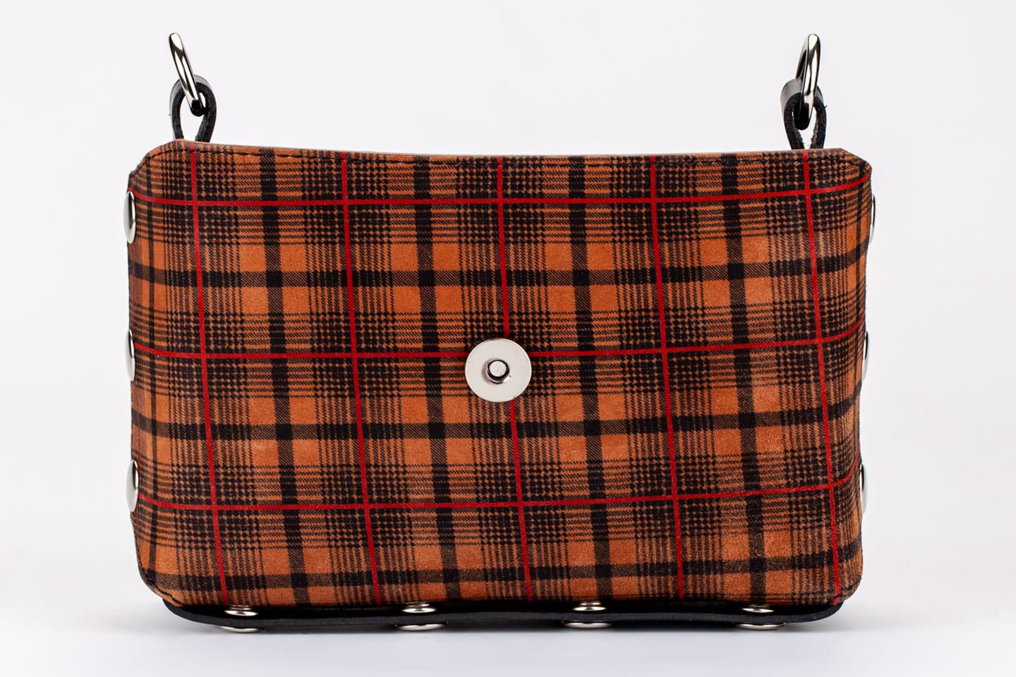 Перфектно решение за Вашия стайлинг – сменяема лицева част изработена от естествена кожа в в оранжево райе.