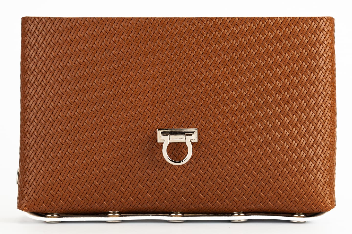 Перфектно решение за Вашия стайлинг – сменяема лицева част изработена от естествена кожа в кафяв цвят.
