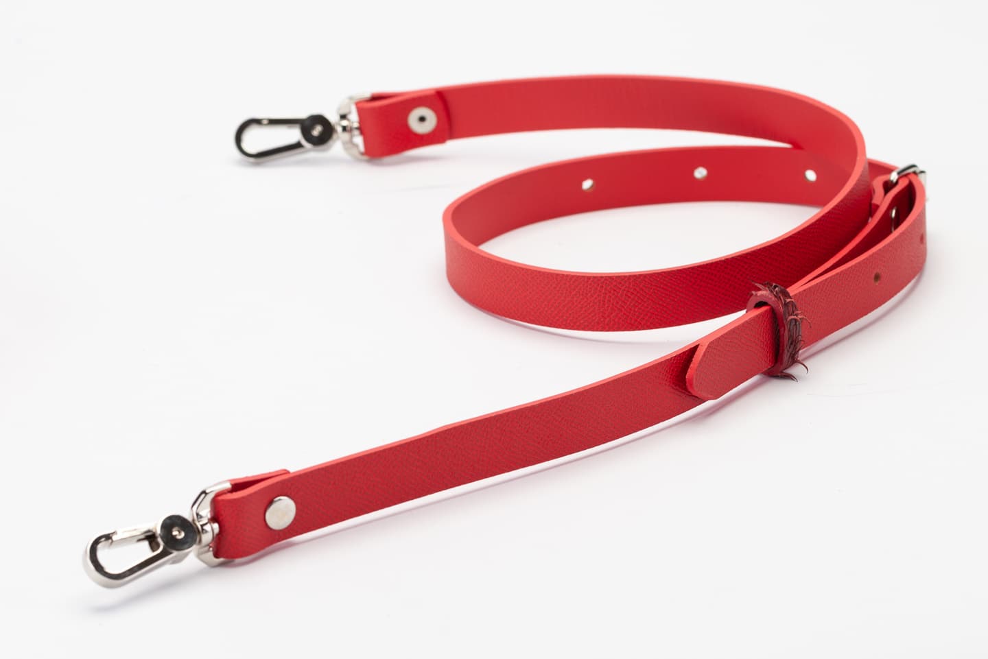 Перфектно решение за Вашия стайлинг – сменяема регулируема дръжка изработена от естествена кожа в червен цвят.
