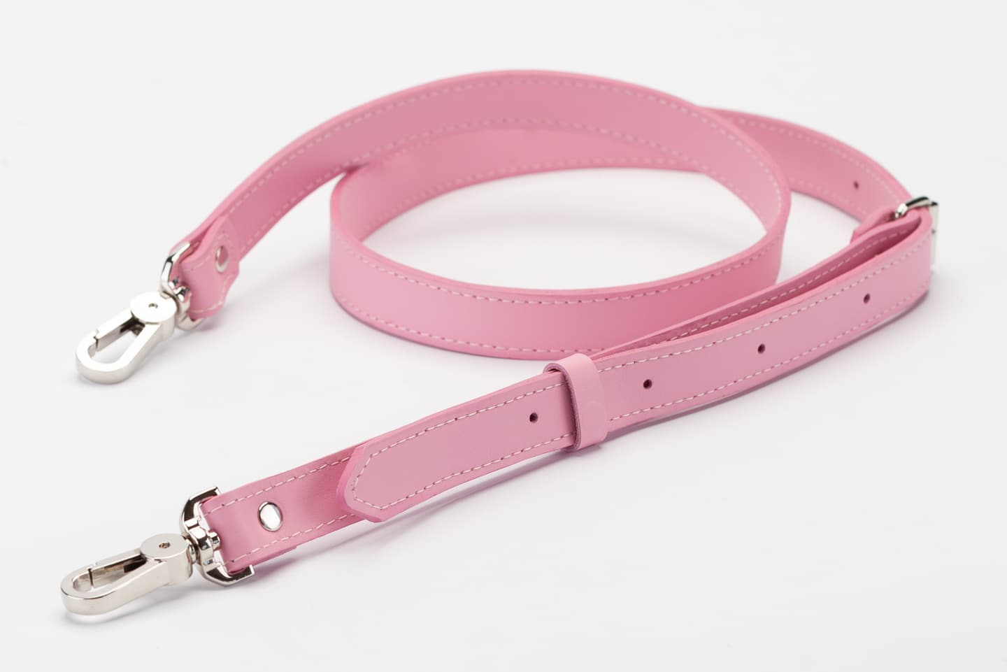 Перфектно решение за Вашия стайлинг – сменяема регулируема дръжка изработена от естествена кожа в розов цвят.