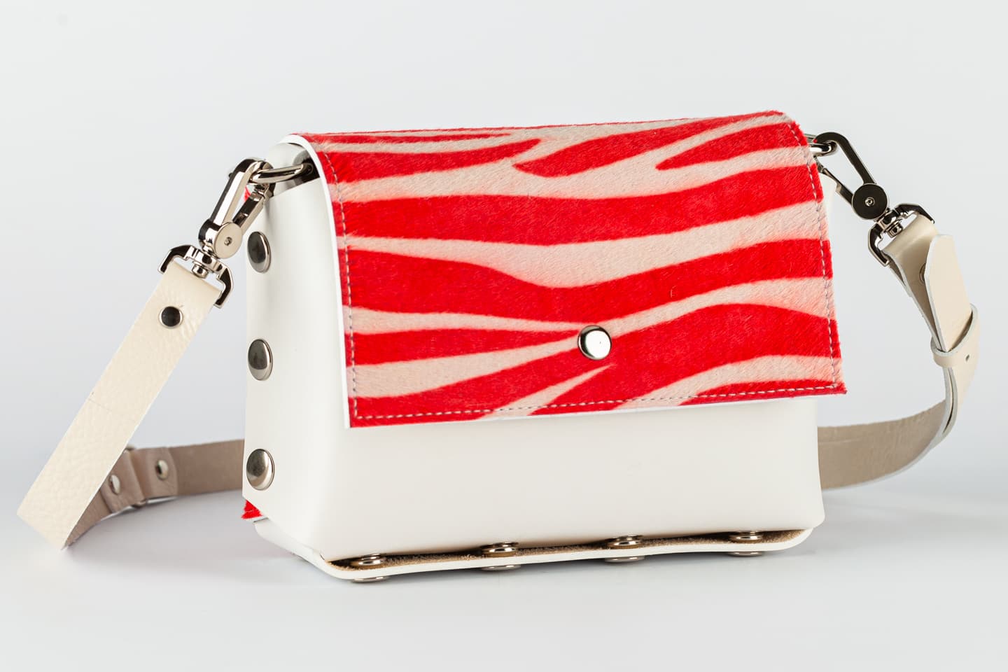 Лицевата част и дъното са изработени от висококачествена италианска кожа в бял цвят.