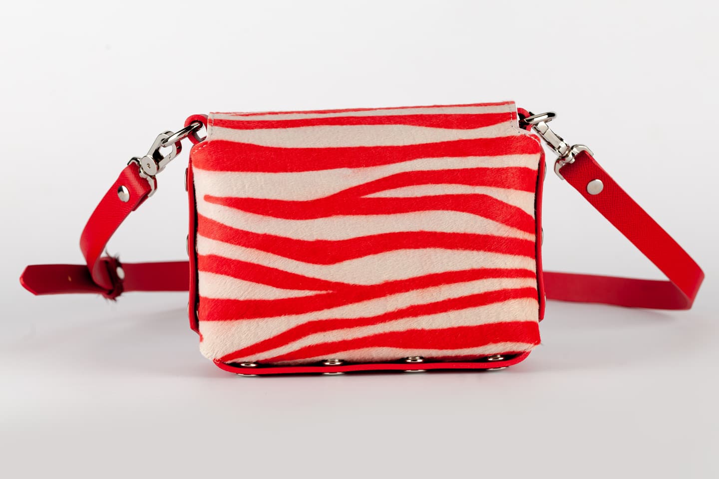 Лицевата част и дъното са изработени от висококачествена италианска кожа в червен цвят.
