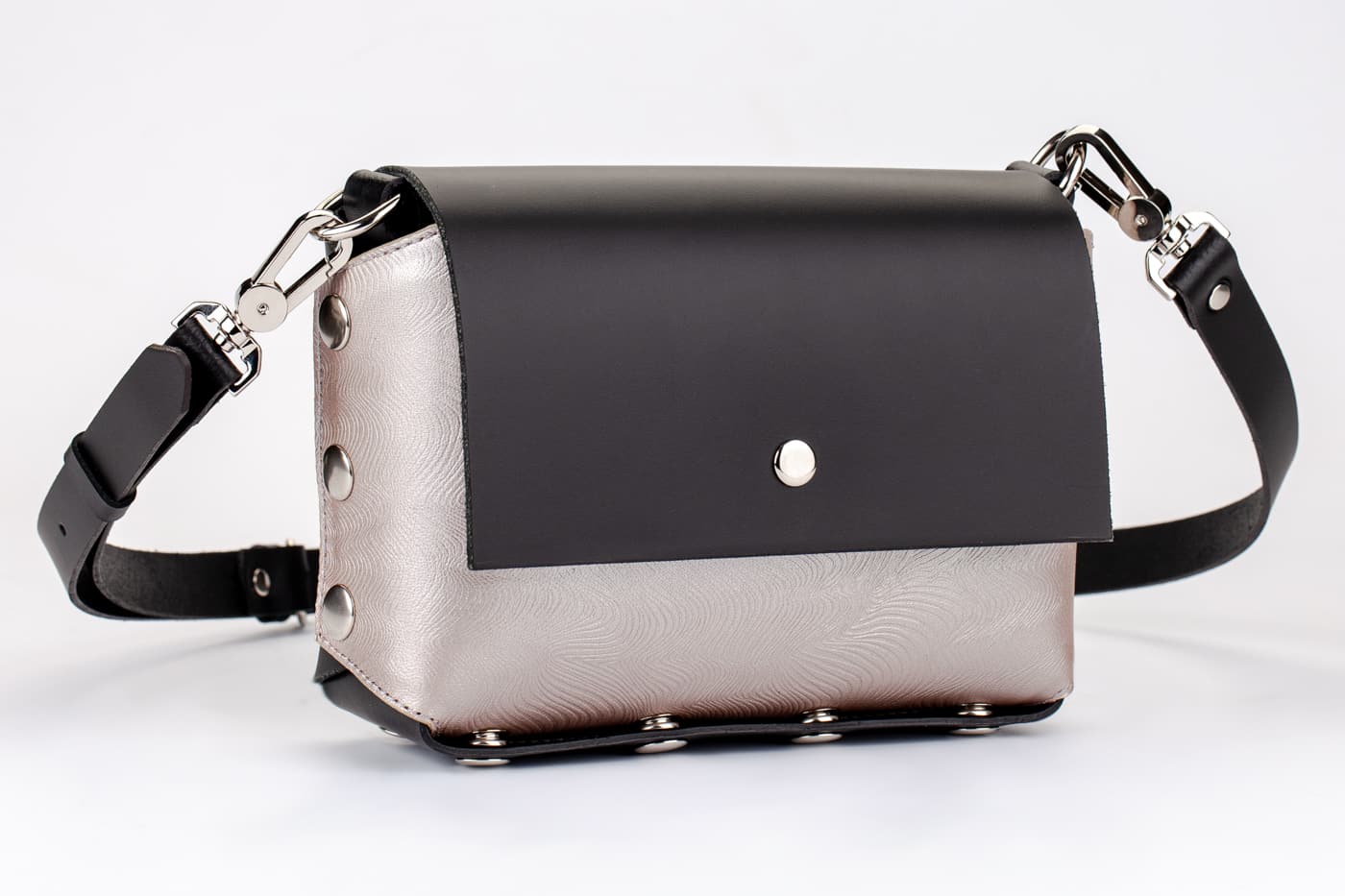 Модел Selin с лицева част от естествена кожа в красив перлен принт.