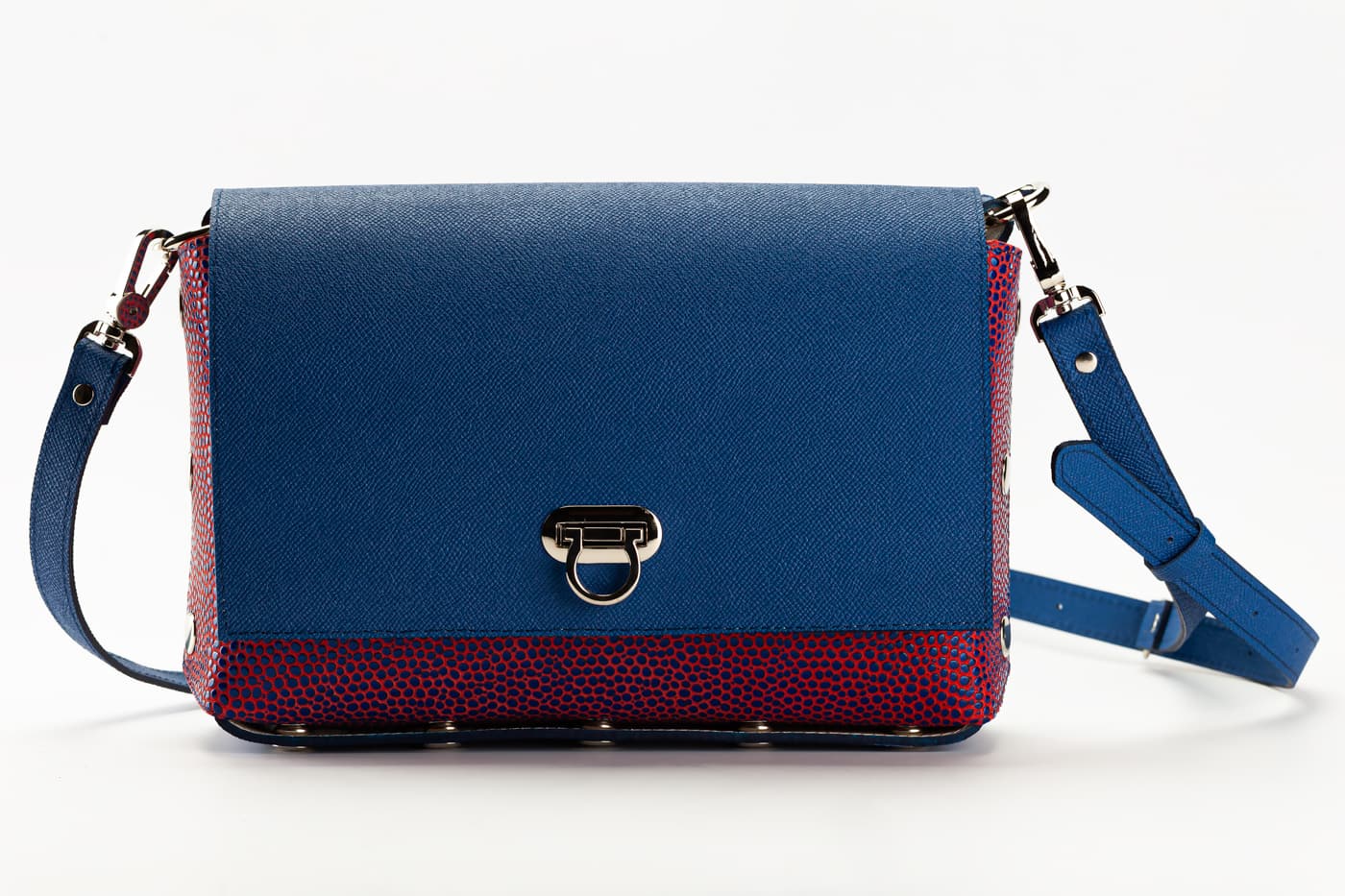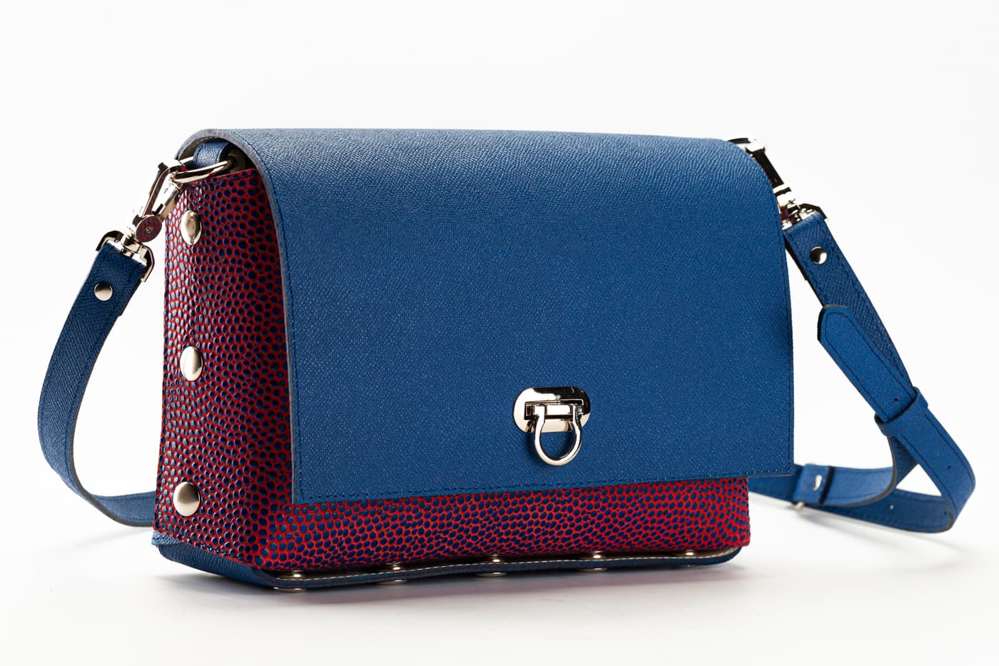 Модел Valena с лицева част от естествена кожа с цветен принт.