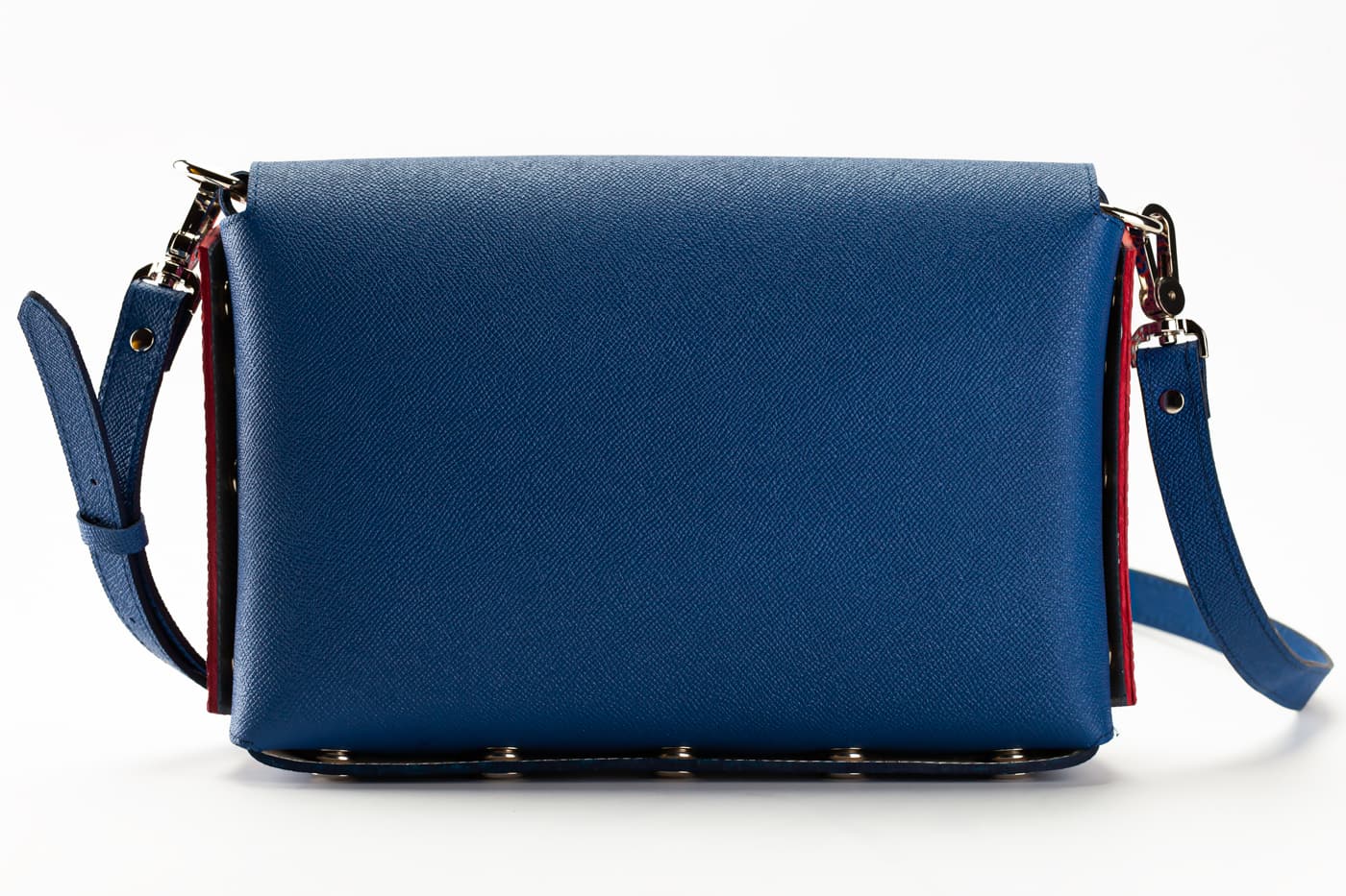 Дъното и капака са изработени от висококачествена италианска естествена кожа в син цвят.