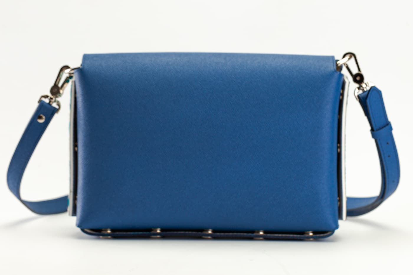 Дъното и капака са изработени от висококачествена италианска естествена кожа в син цвят.