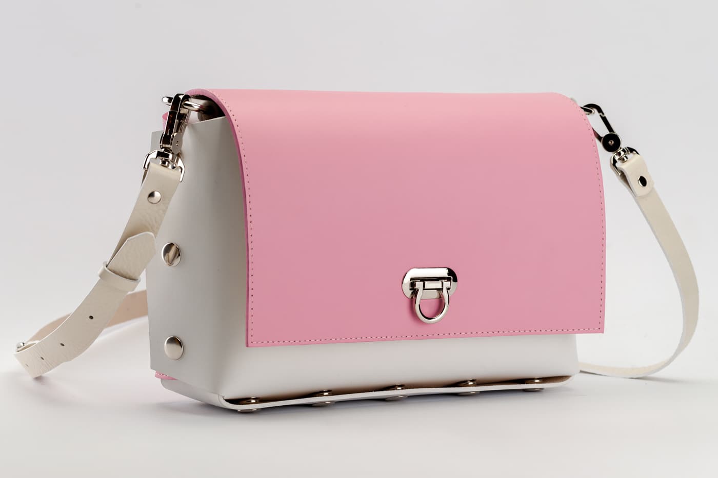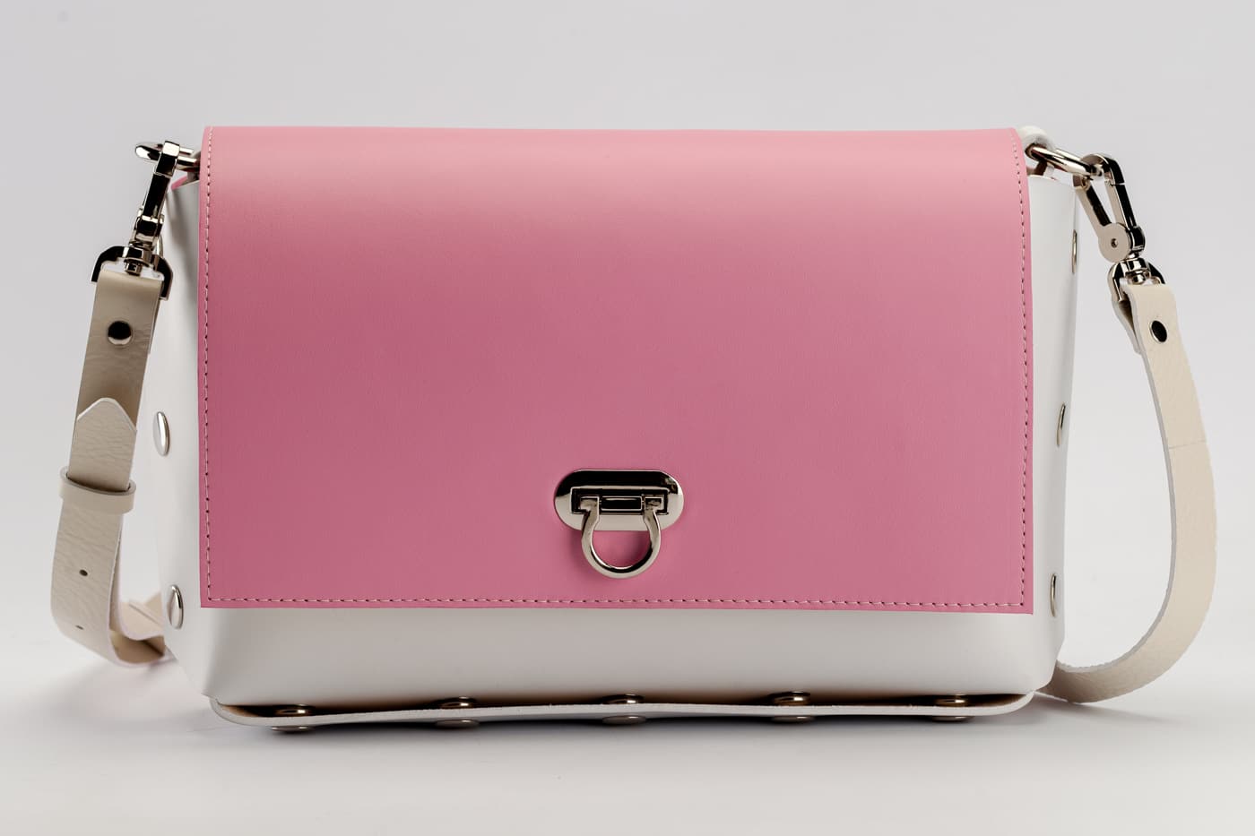 Лицевата част и дъното са изработени от висококачествена италианска кожа в бяло.