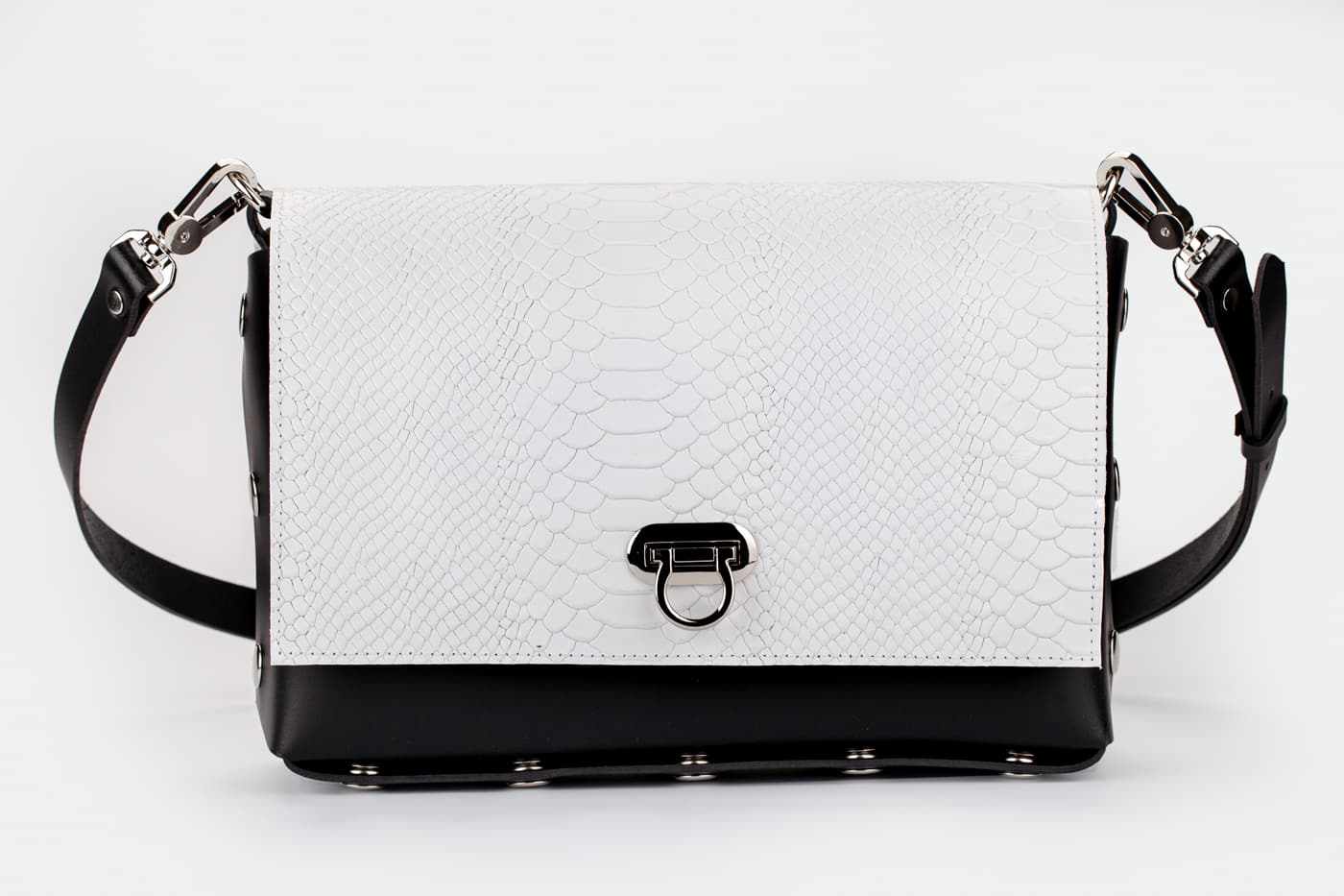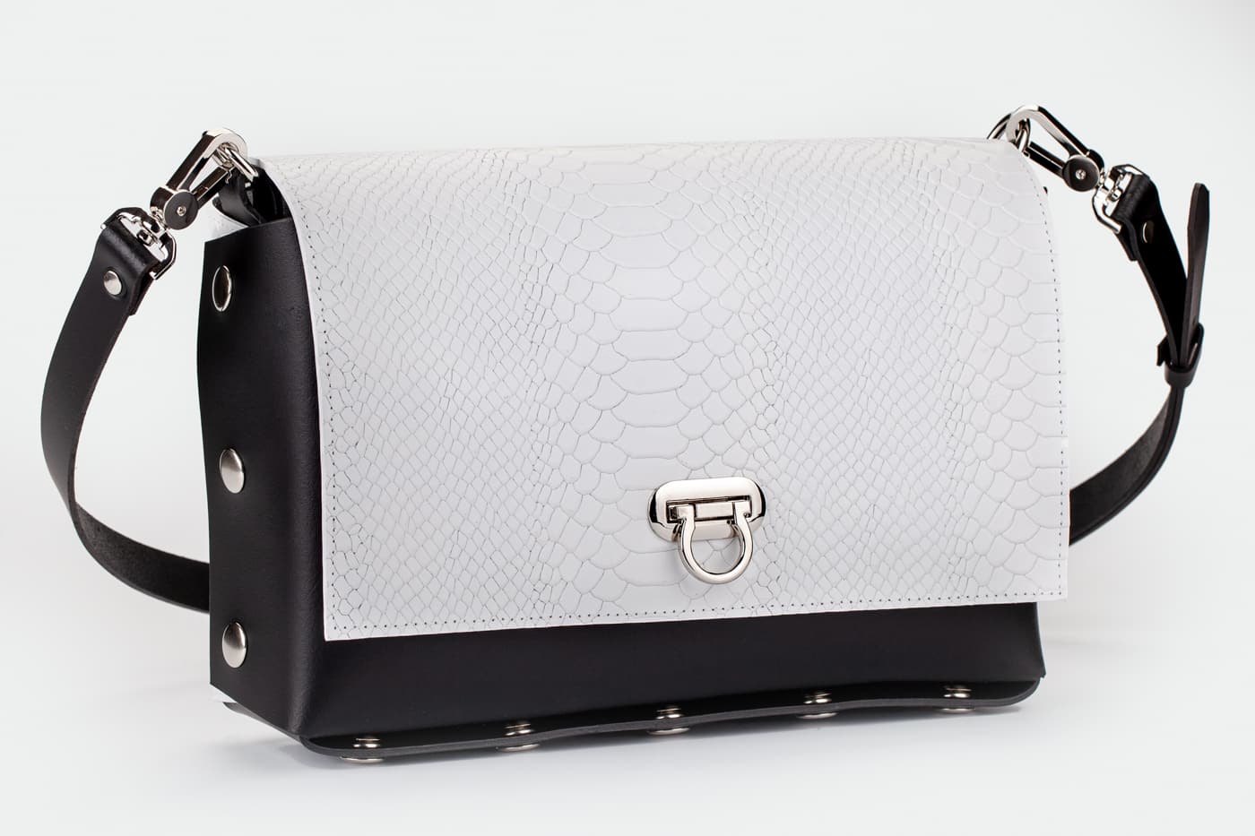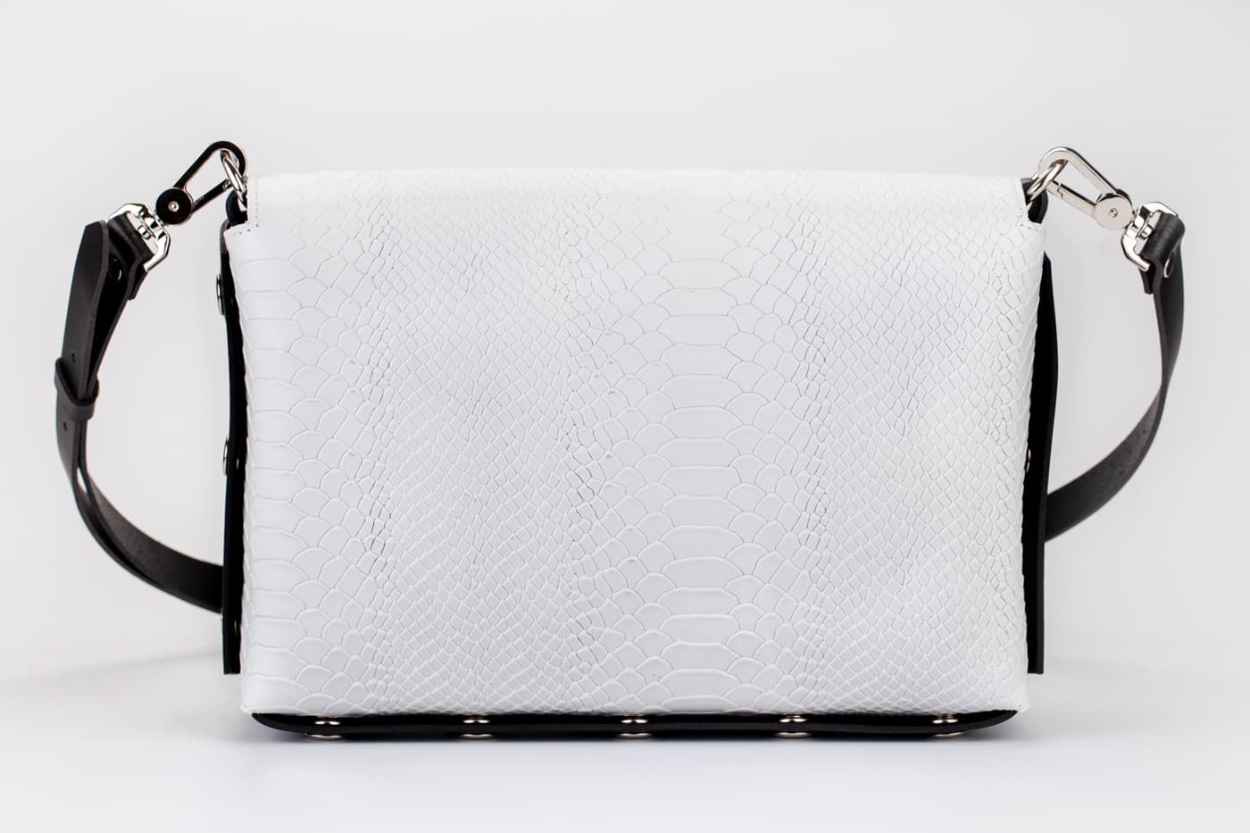 Модел Valena с капак от естествена кожа в бял цвят в кроко принт.