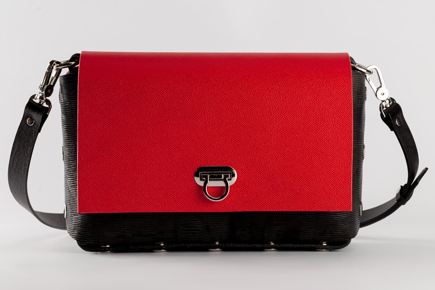 Лицевата част и дъното са изработени от висококачествена италианска кожа в черен цвят.