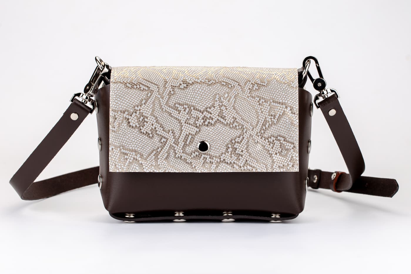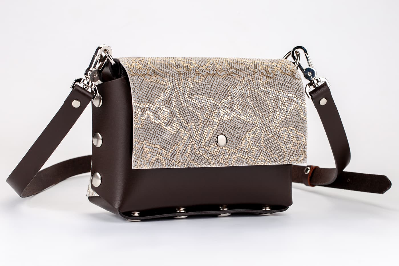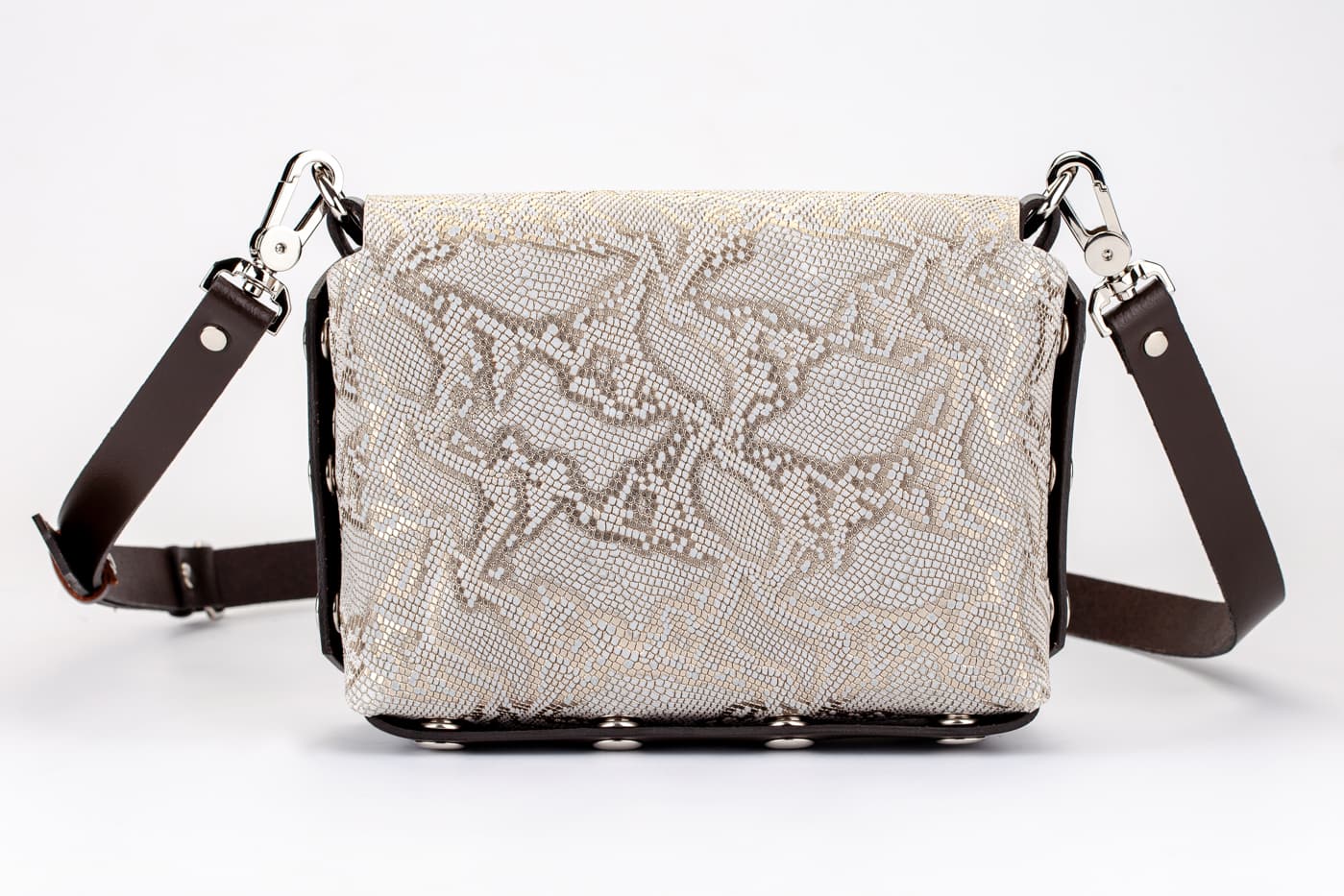 Модел Selin с капак от естествена кожа в красив перлен принт.