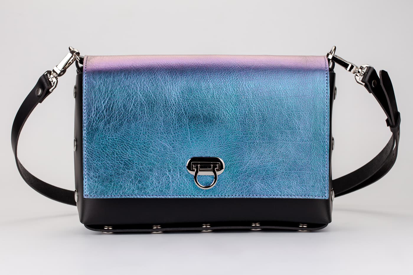 Модел Valena с капак от естествена кожа в красив преливащ принт.